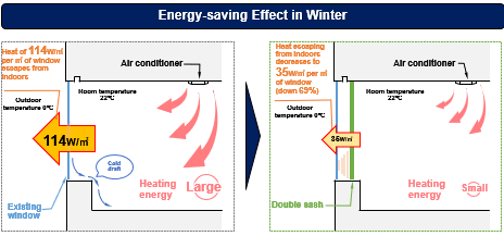 We are installing double sash to improve heat insulation and reduce the air conditioning energy required to keep the room temperature constant to reduce energy consumption. -