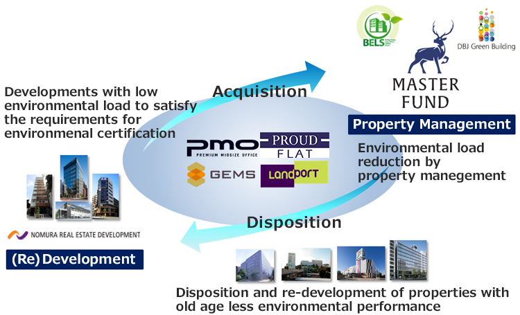 ・Replacement of existing properties with and/or investment in properties with good environmental performance ・Promotion of modification of existing buildings ・Promotion of acquisition of environmental certification and energy saving rating ・Understanding new tenant needs through tenant satisfaction surveys, etc. |