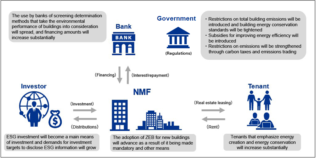 In July 2020, the asset management company to which NMF entrusts management of its assets expressed its support for the TCFD Recommendations and decided to join the TCFD Consortium, an organization of companies in Japan that support the TCFD Recommendations. The objectives are to promote dialogue with unitholders and other stakeholders and collaborate with them to achieve continuous improvement through expansion and enhancement of information disclosures relating to policies and initiatives regarding climate change.
