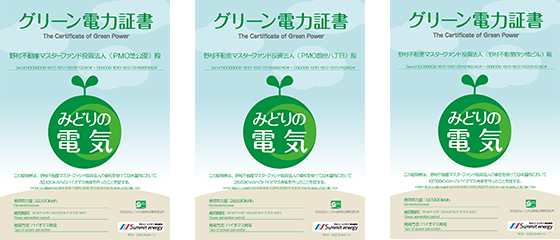 (Of the electricity used at PMO Shibakoen, PMO Ginza Hatchome, and NRE Yotsubashi Building from September 1, 2019 to March 31, 2020, about 198 Mwh is generated by biomass power.) -