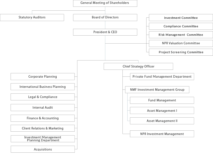 Chair:President and Executive Officer Members:Chief Strategy Officer, other Executive Officers (Note) Compliance Officer, and any other person appointed by the chair. (Note) Excluding Head of Fund or Head of each department of NMF Investment Management Group and part-time Executive Officer |
