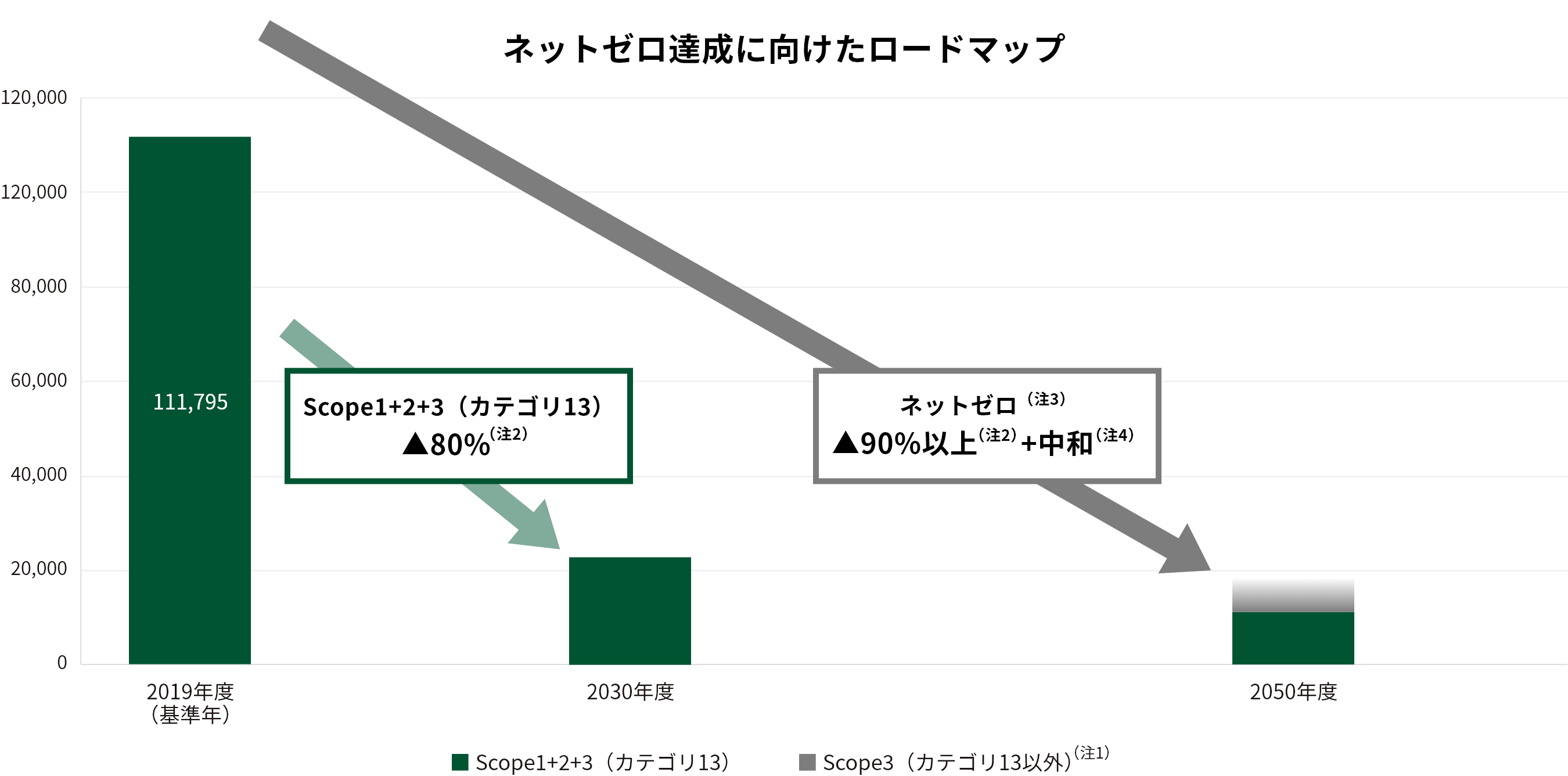 | (注4) | ネットゼロの定義に従い、残留排出量については、国際的に認められる方法にて中和いたします。 |