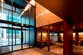 - NMF銀座四丁目ビルにおいて、テナント満足度調査で寄せられたテナント様のご意見・ご要望を踏まえ、1階エントランスの空きスペースを有効活用し、テナント様を来訪されるお客様の待合いスペースや商談スペースとして利用できるラウンジを設置しました。