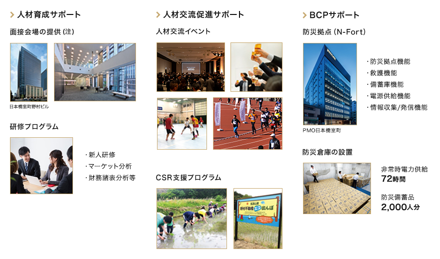 - 投信法の規定により投資法人は従業員を雇用できず、実質的にその運用を資産運用会社の役職員が担っています。本投資法人が資産運用を委託している野村不動産投資顧問株式会社は、人材こそが高度な投資運用を行っていくために重要な経営資源であるという方針のもと、従業員に対する様々な取り組みを行っています。詳細については資産運用会社のウェブサイトをご覧ください。