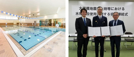 大規模地震等の災害発生時に、プール用水を消火活動等に使用することについて、神奈川消防署と協定を締結しています。 -